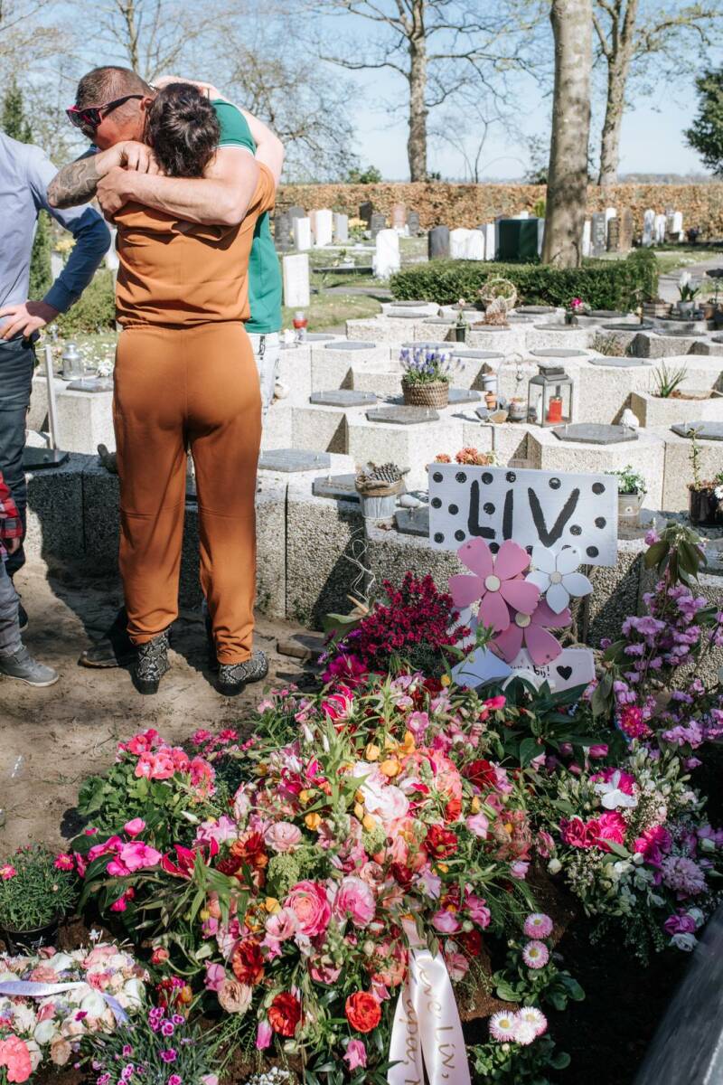Het gevonden baby'tje was veel in het nieuws geweest en een paar uur na mijn bezoek aan Liv stonden zo'n beetje alle nieuwsites vol met foto's van de begrafenis van het baby'tje. De foto's daarvan zorgde voor een nog grotere error in mijn hoofd. Het pad die ze afliepen met het mandje, hetzelfde pad waar ik bijna 3 jaar daarvoor zelf liep met Liv in háár mandje, de mensen op het pad rondom het grafje, 2 a 3 meter naast mijn dochter. Diezelfde foto's van mensen op datzelfde pad heb ik van mezelf, van Arno en mij, die daar 3 jaar eerder op diezelfde plek stonden en ook een mandje moesten begraven. Een mandje met ons kind. Dit zorgde toch wel voor mega flashbacks. Ik zag mezelf weer staan, ik voelde mezelf daar weer staan, ik kon het voelen in elke vezel van mijn lijf. Het beeld van het mandje waar mijn meisje in lag, het mandje wat met elke schep zand steeds verder verdween, mijn kind die met elke schep zand steeds verder en verder verdween, tot er niets meer zichtbaar was, en ik écht los moest laten. Dat gevoel kwam allemaal terug. En werkte niet mee aan mijn gemoedstoestand.