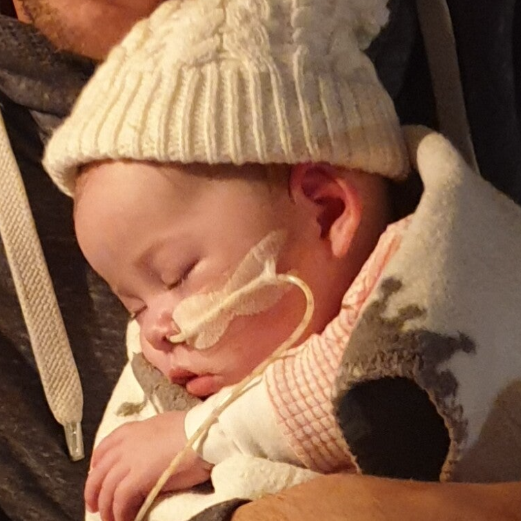 2 februari 2020.. Inmiddels een sonde gekregen. Dit is de allerlaatste keer dat Liv een beetje gelachen heeft. Zo bij dat we er een foto van hebben. Hierna heeft ze nooit meer een lach laten zien..